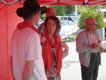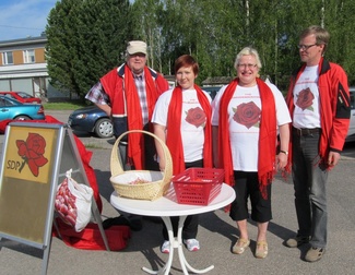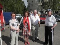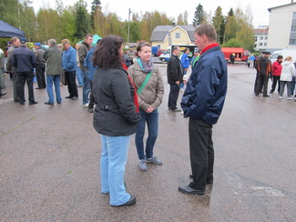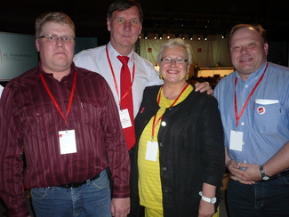 Puoluekokous Joensuussa 27.-29.5.2010. Kuvassa Luoteis-Pirkanmaan edustajat Teemu Ojala Kihniöstä, Maarit Lepistö Hämeenkyröstä ja Tapio Ristamäki Parkanosta yhdessä kansanedustaja Jukka Gustafssonin kanssa.